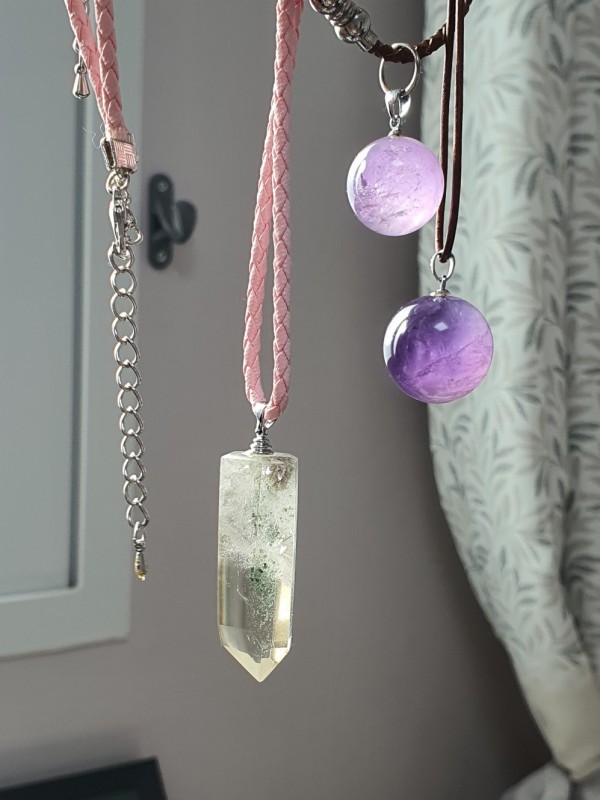 자수정 펜던트랑 팔찌는 색감이 다른데 둘 다 예뻐요. 보고 있으면 포도알이나 행성이 떠올라요