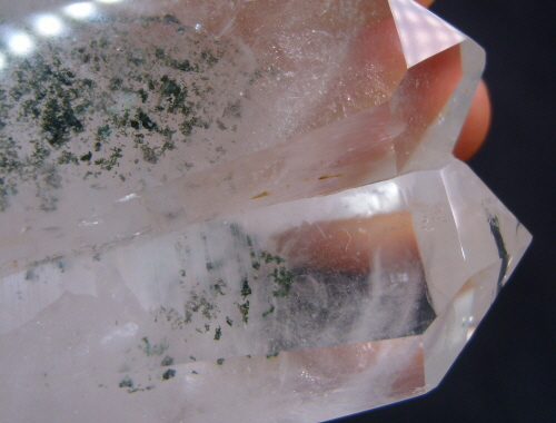 **클로라이트는 녹색의 광물질로서 수정안에 내포되어 인쿠르젼 형태의 수정으로 나타납니다.