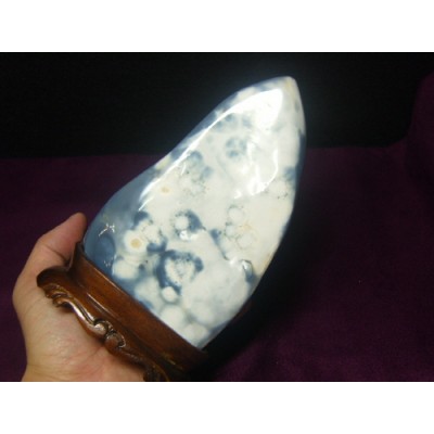 고상한 색상과 흰색 문양이 아름답게 조화를 이루고 있는 아게이트 입니다. 장식용으로도 좋은 품질입니다.