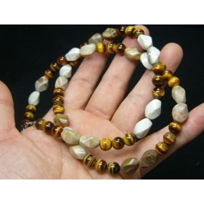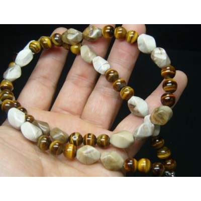 **나무화석(규화목)과 호안석으로 만든 목걸이 입니다.