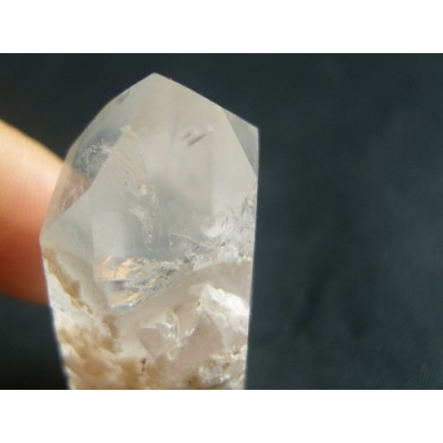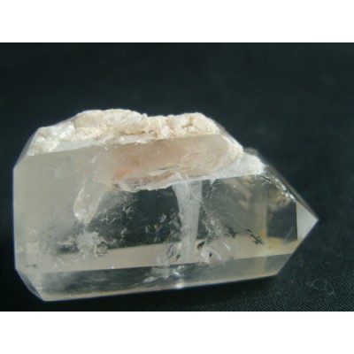 **아프리카 마다가스카르산 작은 백수정 육각주 옆 면에 화이트 칼싸이트 군이 함께 형성된 귀한 수정입니다.