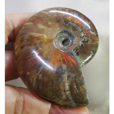 암몰라이트는 암모나이트 화석중 강한압력과 다양한 광물및 수정류의 치환으로 형성되었습니다.