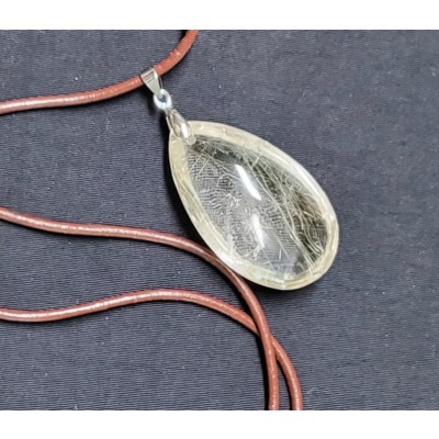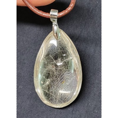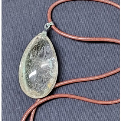 **아프리카 마다가스카르산 천연 금침 수정 펜던트 가죽줄 목걸이 입니다.