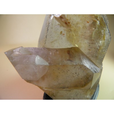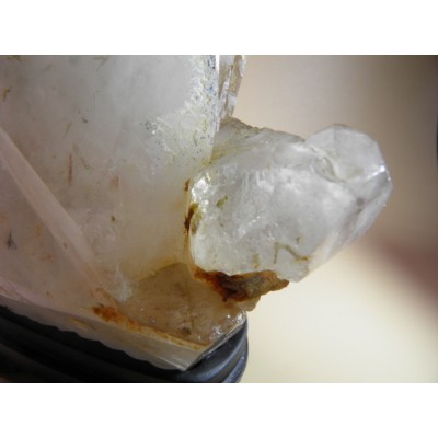 대부분의 이 수정들은 빛에 의해서 발그스레한 핑크빛 기운을 띄게하는 투명한 산화철 막을 가지고 있다.