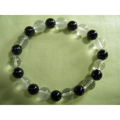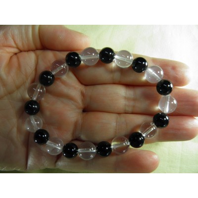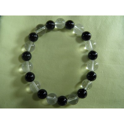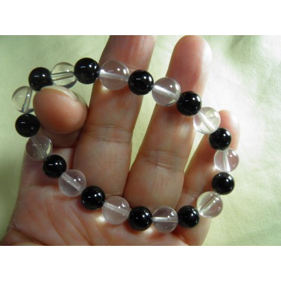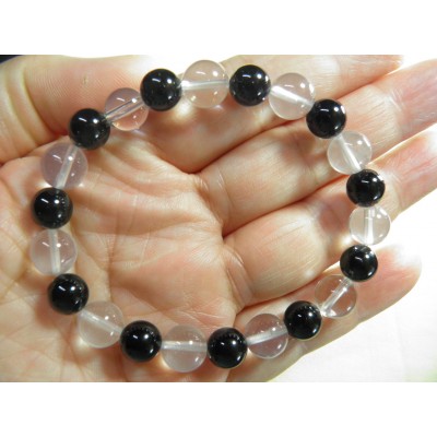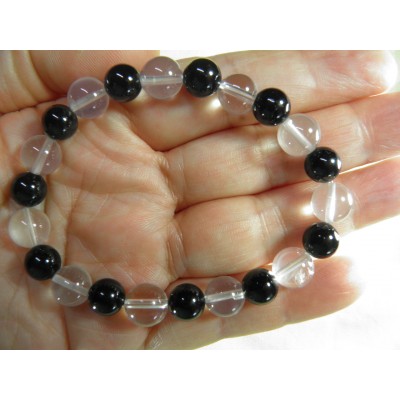**아프리카 마다가스카르산 블랙 투어머린 8mm와 화이트 밀크수정 9mm라운드형으로 만든 20cm 팔찌 입니다.