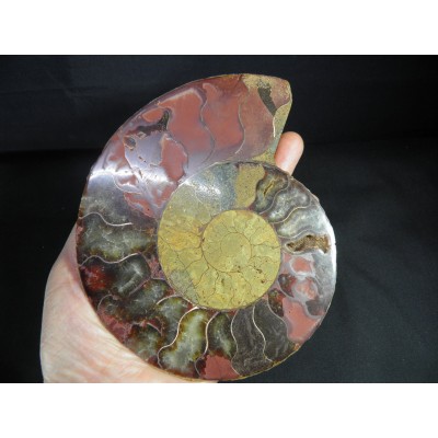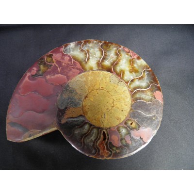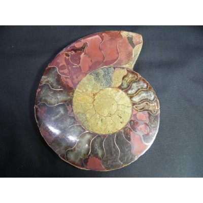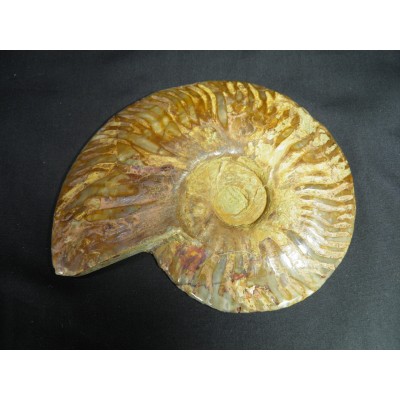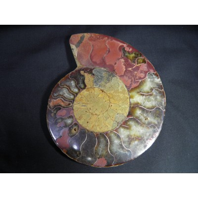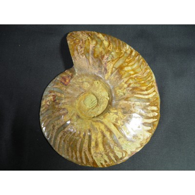 마다가스카르의 암모나이트는 대부분 칼싸이트(방해석)나 수정으로 치환되어서 폴리싱(광택)을 하면 유리처럼 광택이나 매우 아름다움을 느끼게 합니다.