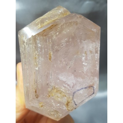 이 수정은 전체적으로 연하게 자수정의 색감을 가지고 있으며 여러겹 펜텀과 기포들이 많이 형성되어 있으며