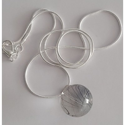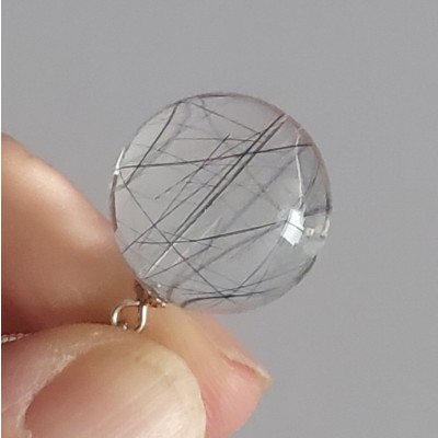 투르말리네이티드는 완전투명 백수정 수정 16.5mm 구슬에 투어머린 침이 형성 된