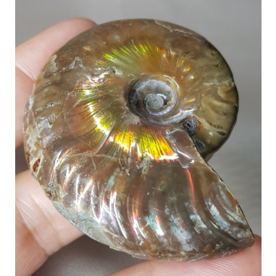 빛을 받으면 색상이 일곱 빛깔을 중심으로 화려하게 빛이 나기 때문에 오팔(opal) 암모나이트 라고도 합니다.
