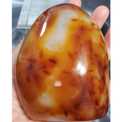 산화철에 의해서 형성된 오렌지, 레드 등 반투명 칼세도니입니다.