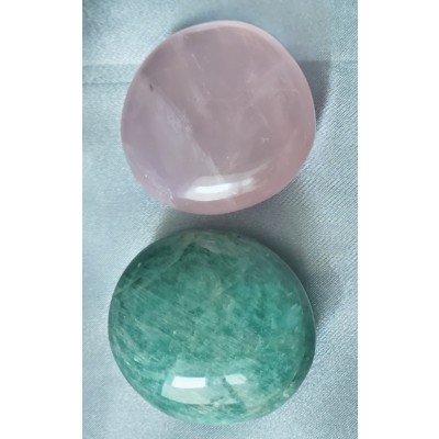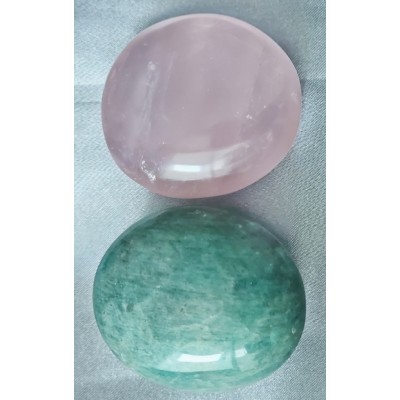 **아프리카 마다가스카르산 색감 좋은 아마조나이트와 스타 장미수정 2종 구성입니다.