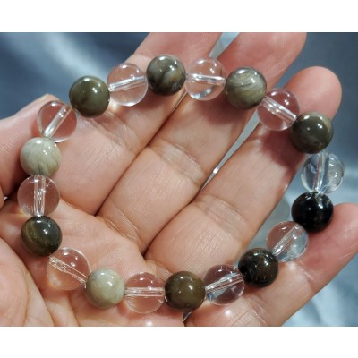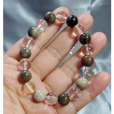 **깨끗한 백수정과 규화목(나무화석) 으로 만든 팔찌 입니다.