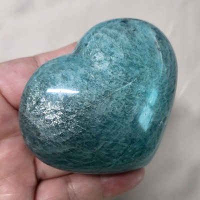 **아프리카 마다가스카르 산 아마조나이트 큰 하트 모양입니다.