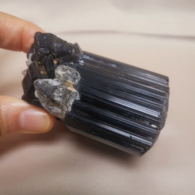 작은 또 다른 투어머린 결정들이 단단하게 결합되어서 형성된 수정입니다.