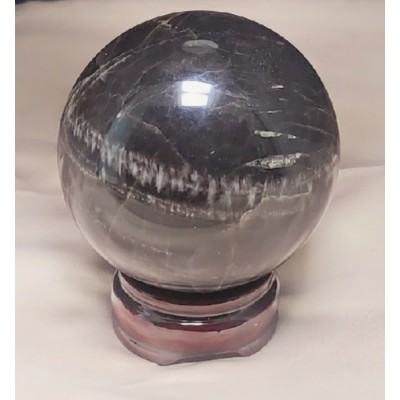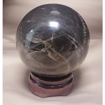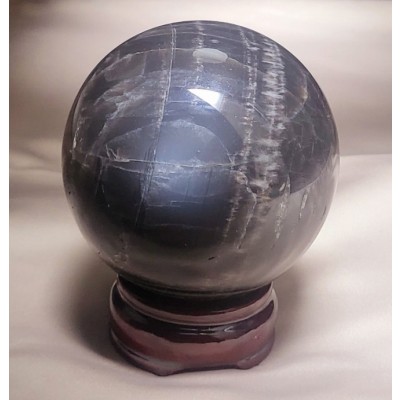 빛에 반응하는 은빛 광택을 가지고 있으며, 블랙 문 스톤 이라고 도 불리어집니다.
