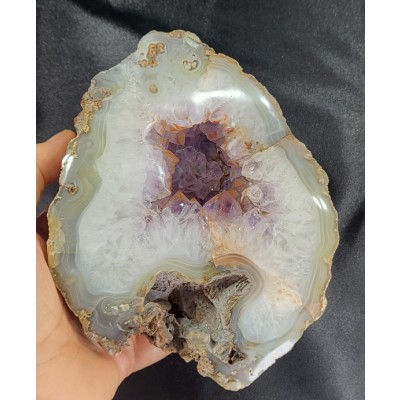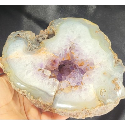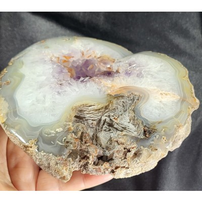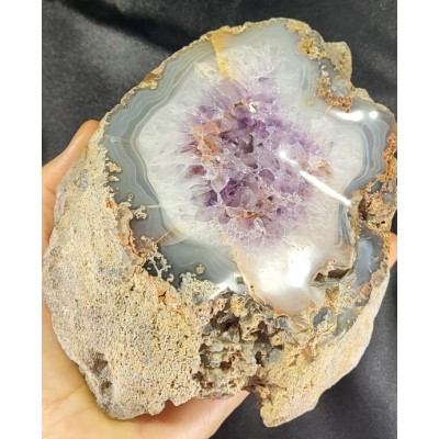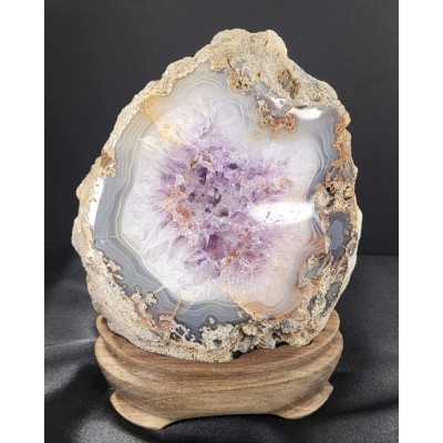 특이한 형태의 아게이트와 자수정이 결합해서 형성된 지오드입니다.