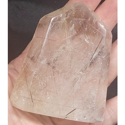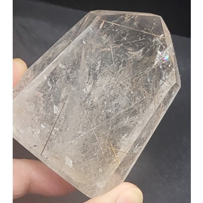 **아프리카 마다가스카르 산 금침.은침.갈색침. 투어머린침등이 형성된 기운 좋은 타뷸러 쿼츠 형 원석입니다.
