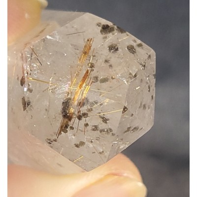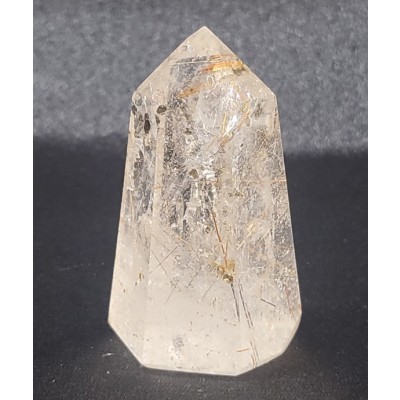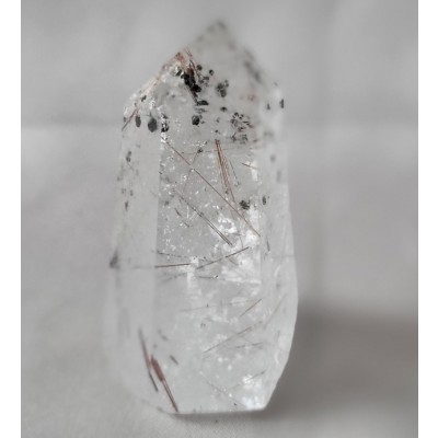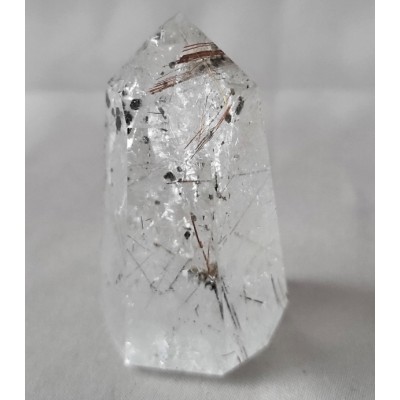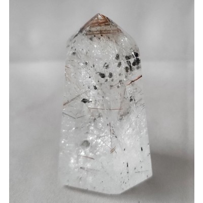 금색 침, 붉은 색 침, 은색 침, 투어머린 침 등과 투어머린 결정이 형성된 작지만 기운 좋은 침 수정입니다.