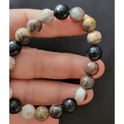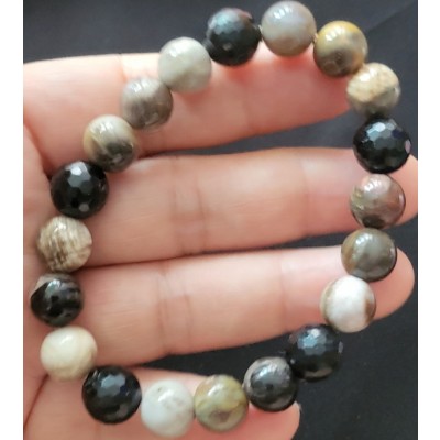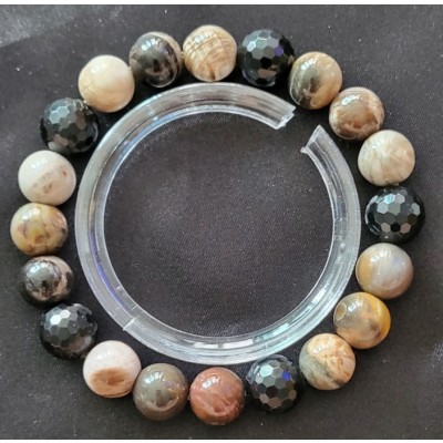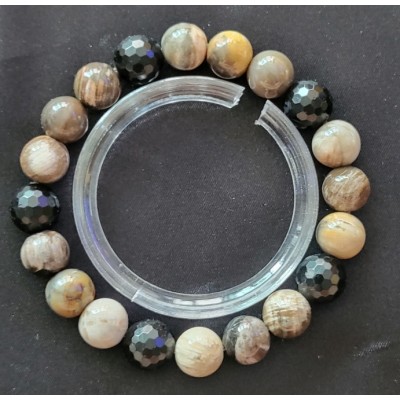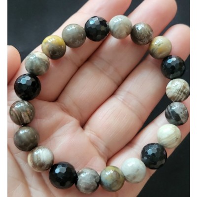 **아프리카 마다가스카르 산 10mm 규화목과 라운드 컷 투어 머린으로 만든 팔찌 입니다.