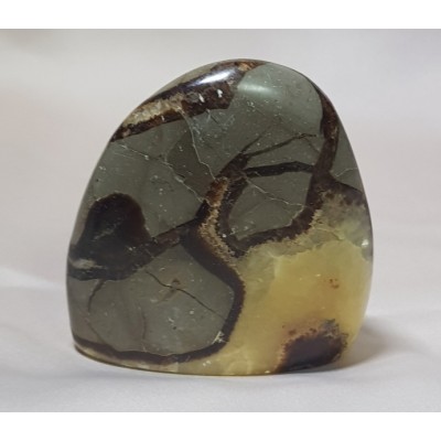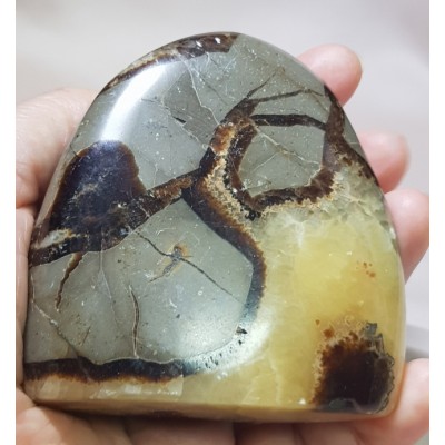 셉타리안은 노란 부분이 칼싸이트, 갈색 라인이 아라고나이트, 그리고 바깥쪽의 회색빛을 내는 덩어리는 석회석입니다.