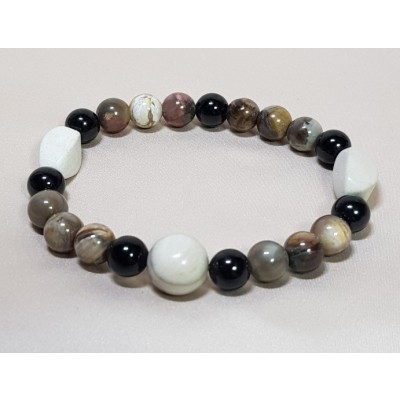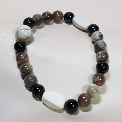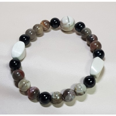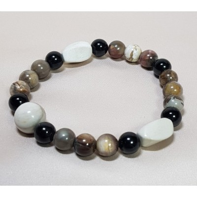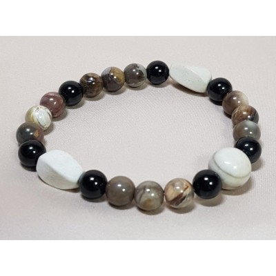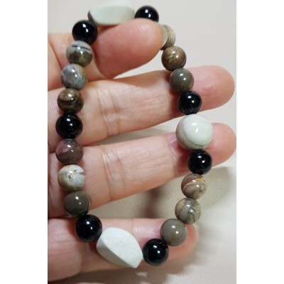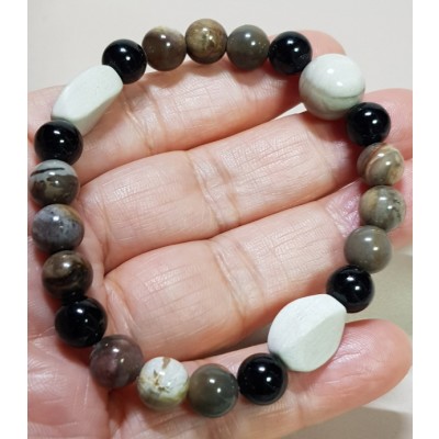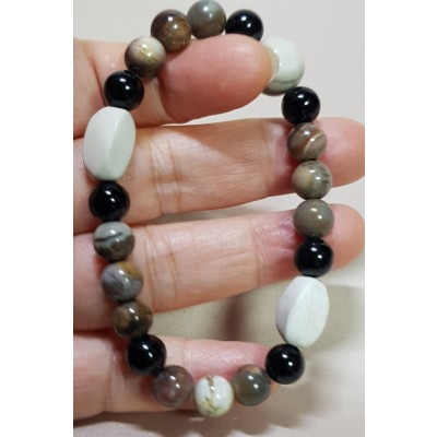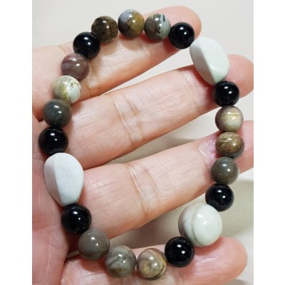 **아프리카 마다가스카르 산 규화목 (나무 화석) 과 블랙 투어머린 라운드형으로 만든 8mm 팔찌 입니다..