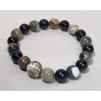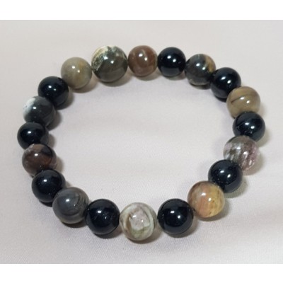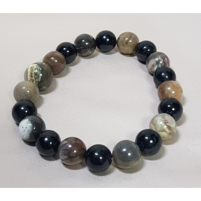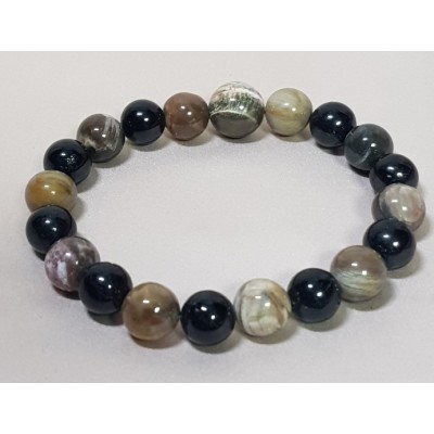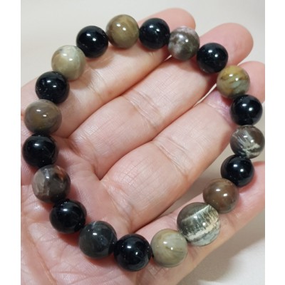 **아프리카 마다가스카르 산 투어머린, 규화목(나무화석) 10mm 라운드 형팔찌입니다.