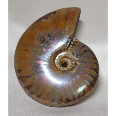 암몰라이트는 암모나이트 화석중 강한압력과 다양한 광물및 수정류의 치환으로 형성되었습니다.