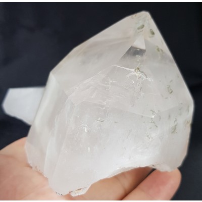 좌대 안으로 들어 있으나 자가ㅣ치유 형태 (파인애플 처럼 형성됨) 를 보여주고 있는 에너지 좋은 수정 형태입니다.