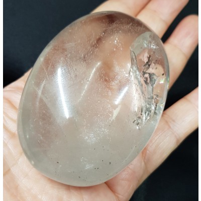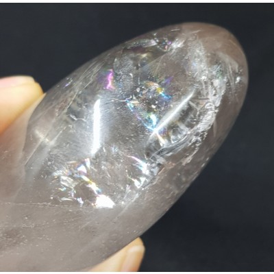 수정안에서 형성 된 크랙이 멋있고 아름다우며 무지개가 형성된 기운 좋은 약한 색 황수정입니다.