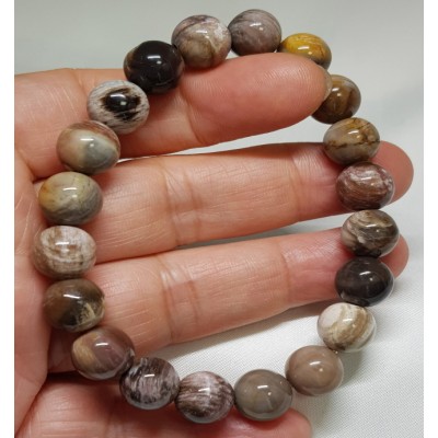 **아프리카 마다가스카르 산 규화목( 나무 화석 수정) 10mm 라운드형 팔찌입니다.