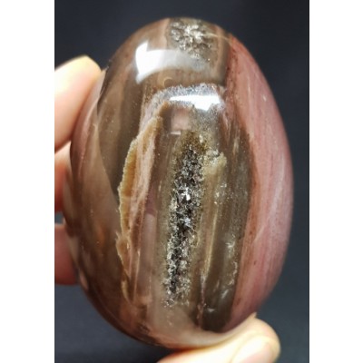 **아프리카 마다가스카르 산 규화목 (나무화석) 반짝이는 수정 결정이 작은 지오드 형성하고 있는 계란형 화석입니다.
