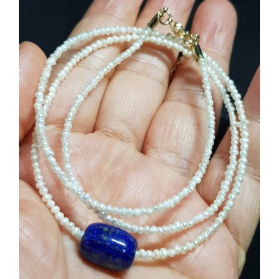 **좁쌀 진주와 라피스 라줄리를 포인트로 만든 목걸이입니다.