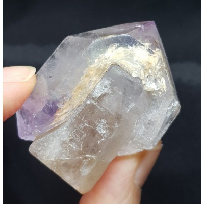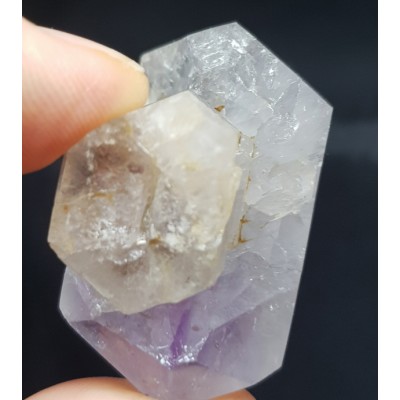 **아프리카 마다가스카르 산 무지개 자수정 더블 포인트와 레무리안 수정이 결합하여 셉타수정을 형성하고 있는 기운 원석입니다.