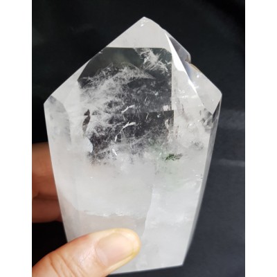 투명도 좋고 깨끗한 포인트에서는 자연스러운 천연의 홈이 형성됨으로 에너지 상승 효과를 더해주는 귀한 수정입니다.