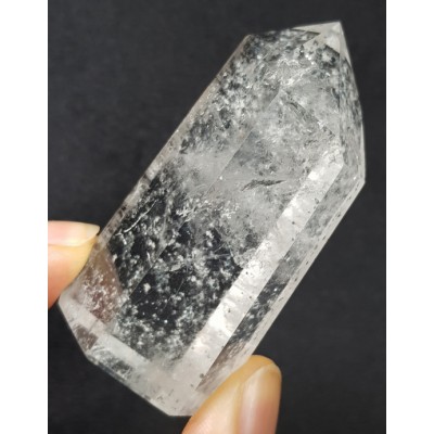 **아프리카 마다가스카르 산 눈꽃 같은 화이트 크랙과 블랙 티타늄이 형성된 인쿠르젼 육각주입니다.