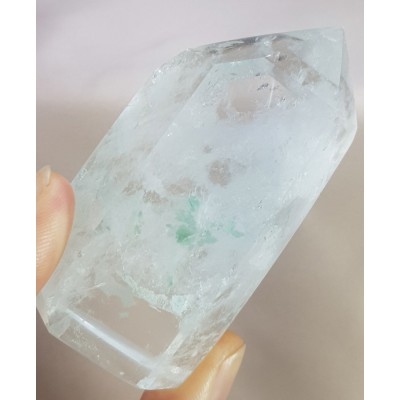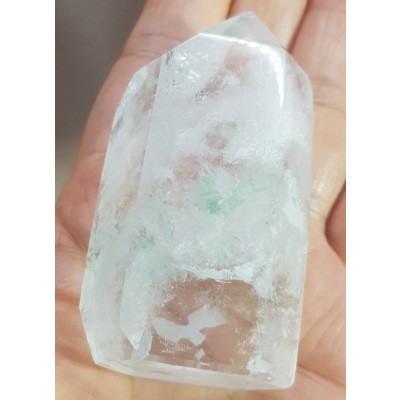 **아프리카 마다가스카르 산 인쿠르 젼 화이트와 클로라이트 팬텀이 형성된 이시스형 포인트 육각주형입니다.