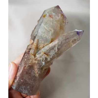 **카콕세나이트 (Cacoxenite)...황색, 주황색.살짝 붉은 계통의 침전 물이 수정 형성시 함께 형성된 수정.깃털 형이 들어 있는것은 희귀 성을 가지고 있음.