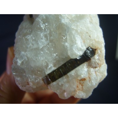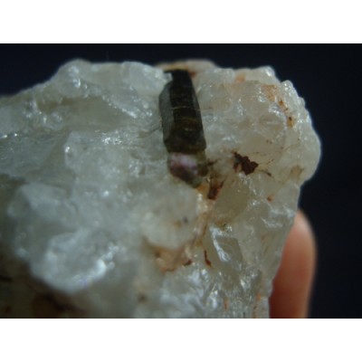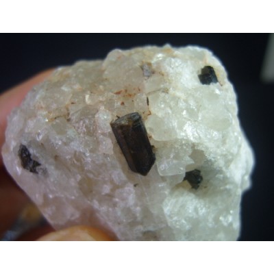 수정을 모암으로 작은 투어머린 결정들이 형성되어 있습니다.