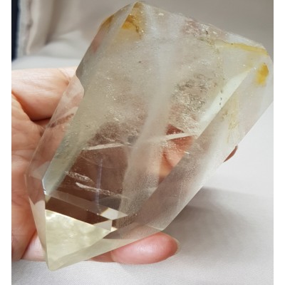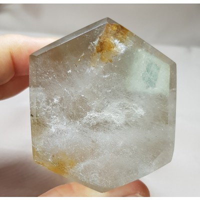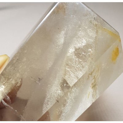 **카콕세나이트 (Cacoxenite)...황색, 주황색.살짝 붉은 계통의 침전 물이 수정 형성시 함께 형성된 수정.깃털 형이 들어 있는것은 희귀 성을 가지고 있음.