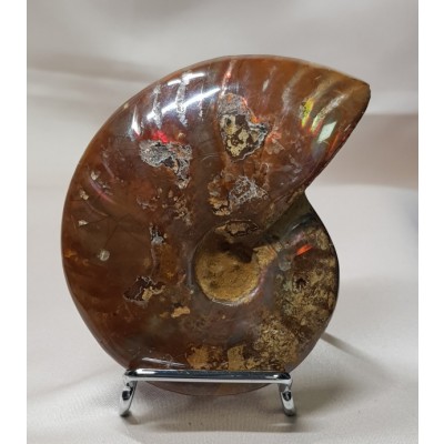 암몰라이트는 암모나이트 화석중 강한압력과 다양한 광물및 수정류의 치환으로 형성되었습니다.