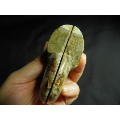 마다가스카르의 암모나이트는 대부분 칼싸이트(방해석)나 수정으로 치환되어서 폴리싱(광택)을 하면 유리처럼 광택이나 매우 아름다움을 느끼게 합니다.