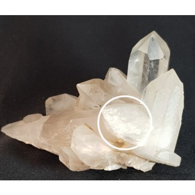 흙이나 알수없는 광물질이 함께 형성 될수있으며 완전 유착된 것이라 함께 구성된 수정의 일부분으로 보시는게 좋을것 같습니다.