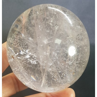 손끝에서 느껴지는 흠결이나 홈이 몇 곳 있으나 천연 수정의 인증으로 느껴집니다.