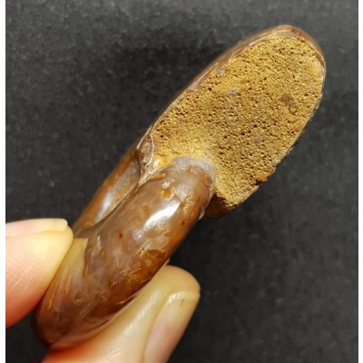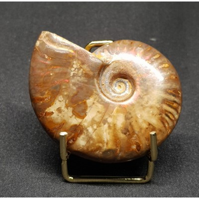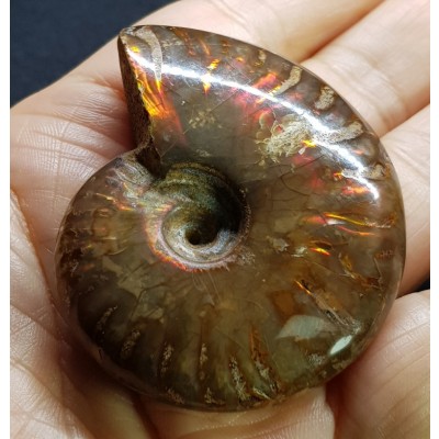 암몰라이트는 암모나이트 화석중 강한압력과 다양한 광물및 수정류의 치환으로 형성되었습니다.