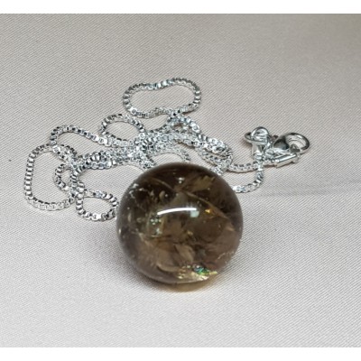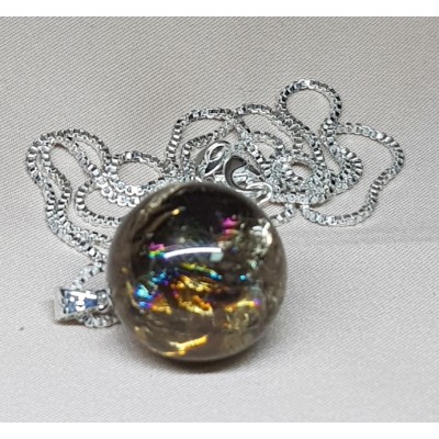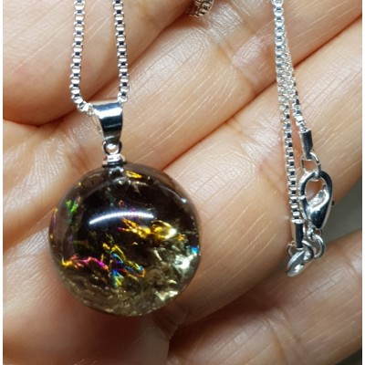 **아프리카 마다가스카르 산 무지개 연수정 19mm 구슬형 펜던트 실버체인 목걸이입니다.