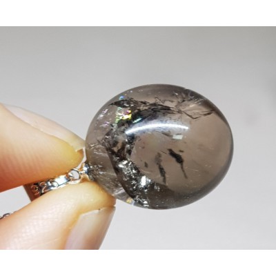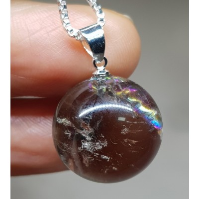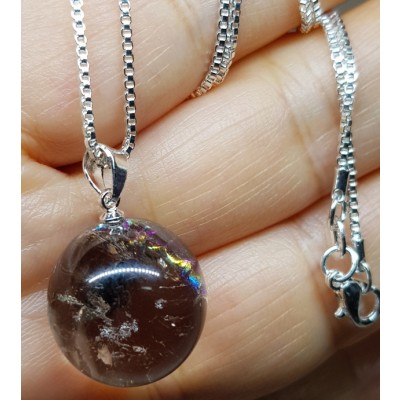 **무지개 연수정 18mm 구슬형 펜던트 실버체인(92.5% ) 45cm 목걸이입니다.