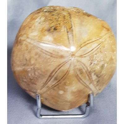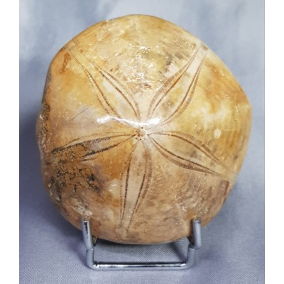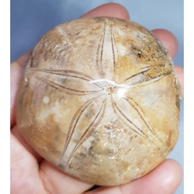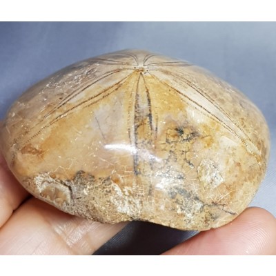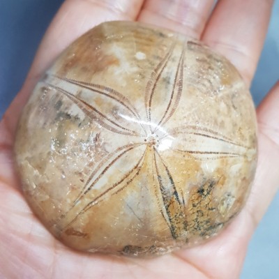 위에 올린 성게화석은 하얀색 또는 회색 바탕에 5개 내외의 꽃잎 모양 가시가 있는 둥근 형태로 실제 성게와 비슷하지만