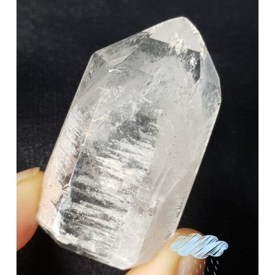 실제 수정은 얼음처럼 투명한 모습에 화이트 팬텀이 형성된 희귀 수정입니다.