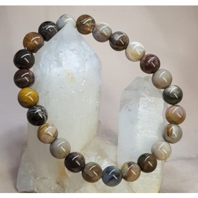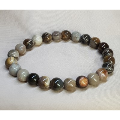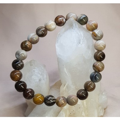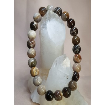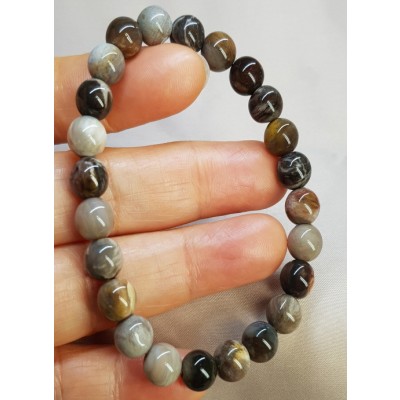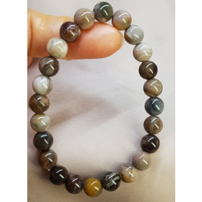 **아프리카 마다가스카르 산 규하목(나무화석수정)으로 만든 8.6mm 라운드 형 팔찌입니다.