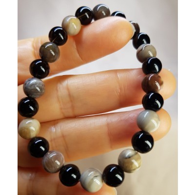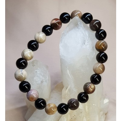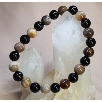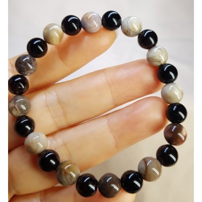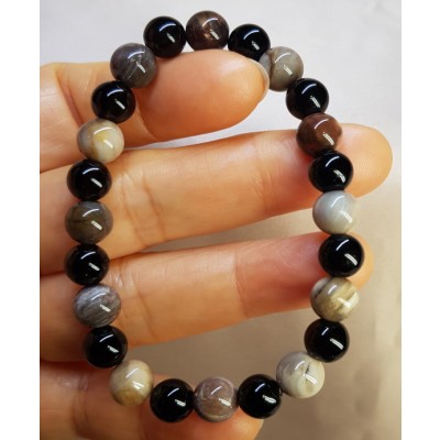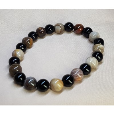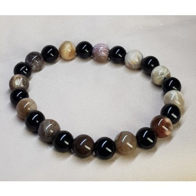 **아프리카 마다가스카르 산 나무화석(규화목) 수정8.6mm와 투어머린8mm로 만든 팔찌입니다.